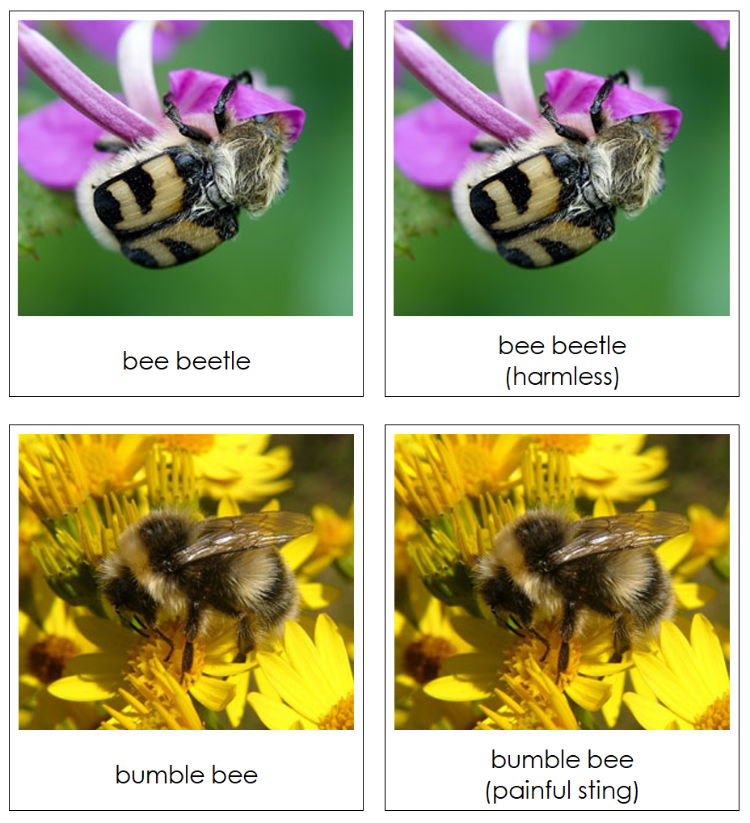 One set of cards has the animal's name; the second set has the name along with a biological or physical trait (harmless, poisonous, etc.).