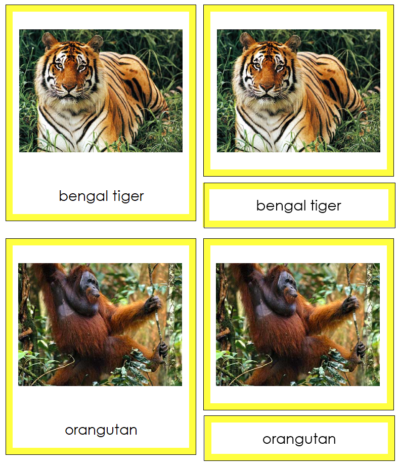 Cards with labels are approx. 3½" x 3¼", cards without labels are approx. 1" shorter. Cards have a yellow border.