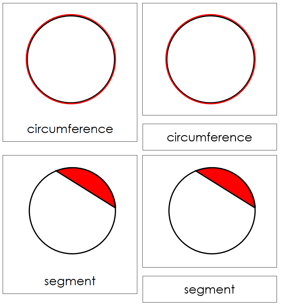 This set includes 14 parts of a circle: arc, chord, diameter, radius, circumference, area, segment, sector, tangent, secant, external, internal, concentric, and annulus.