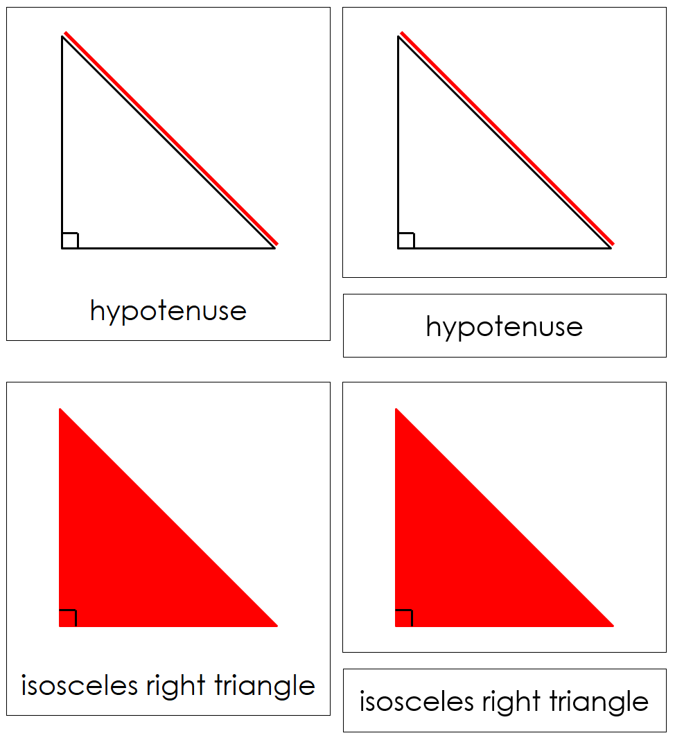 This set introduces 15 triangle concepts: equilateral triangle, isosceles triangle, scalene triangle, right triangle, obtuse triangle, acute triangle, equilateral triangle, isosceles acute triangle, scalene acute triangle, isosceles obtuse triangle, scalene obtuse triangle, isosceles right triangle, scalene right triangle, legs of a right triangle, and hypotenuse.