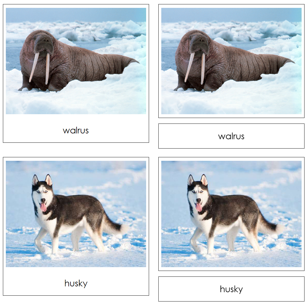 To use the 3-part cards, match the labels to their corresponding pictures. Verify the matches using the control cards (cards with labels attached).