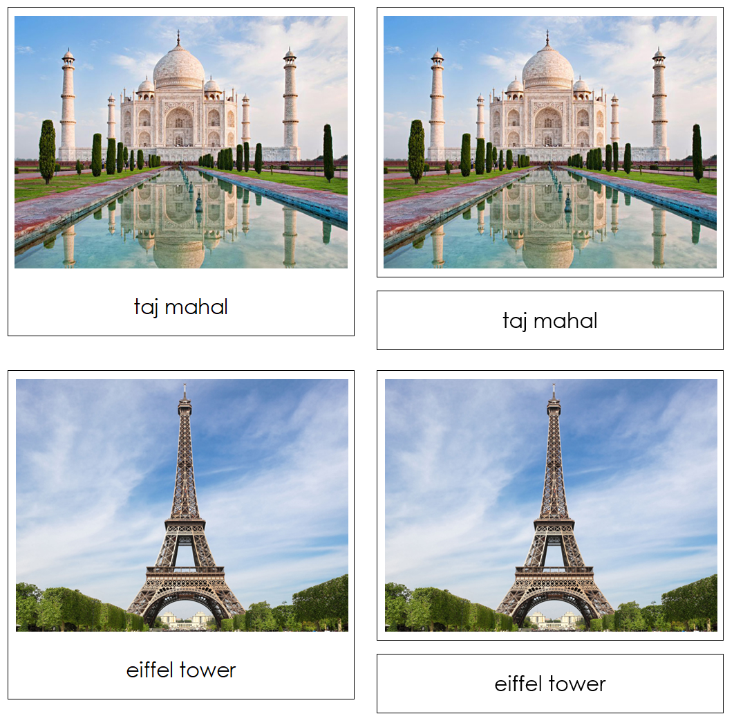 To use the 3-part cards, match the labels to their corresponding pictures. Verify the matches using the control cards (cards with labels attached).