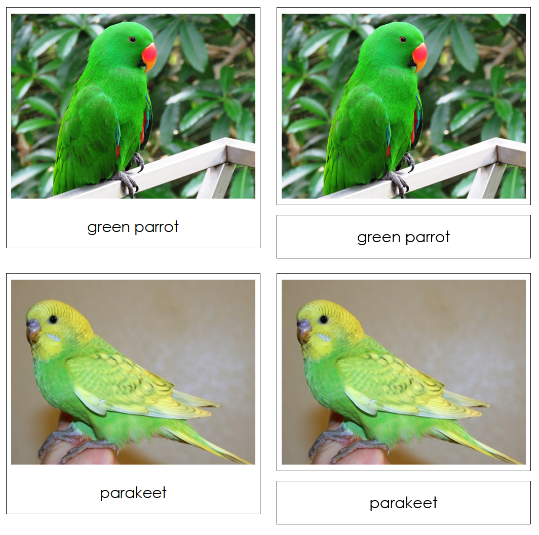 To use the 3-part cards, match the labels to their corresponding pictures. Verify the matches using the control cards (cards with labels attached).