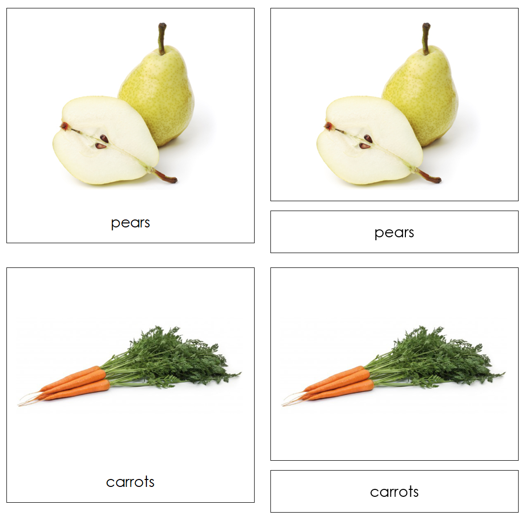 To use the 3-part cards, match the labels to their corresponding pictures. Verify the matches using the control cards (cards with labels attached).