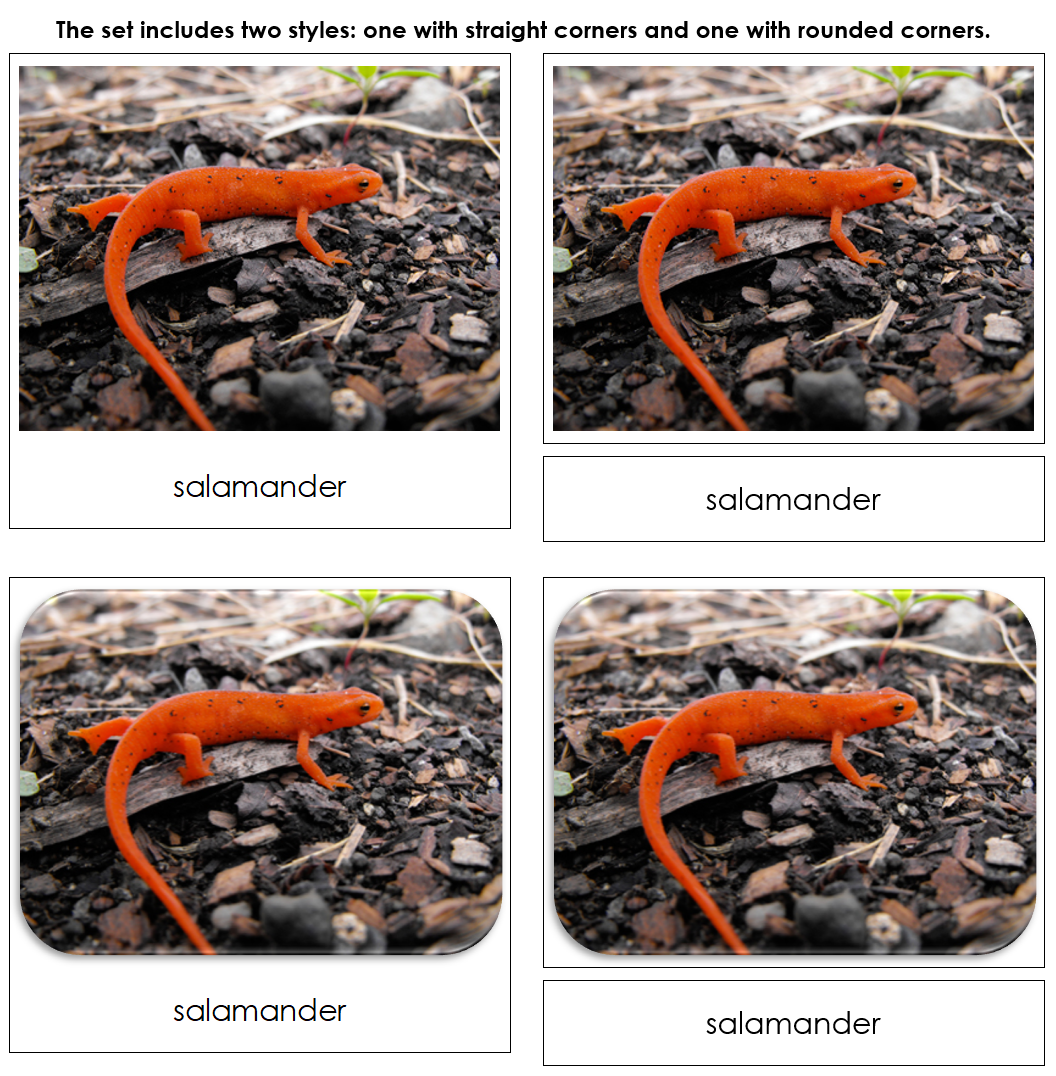 To use the 3-part cards, match the labels to their corresponding pictures. Verify the matches using the control cards (cards with labels attached).
