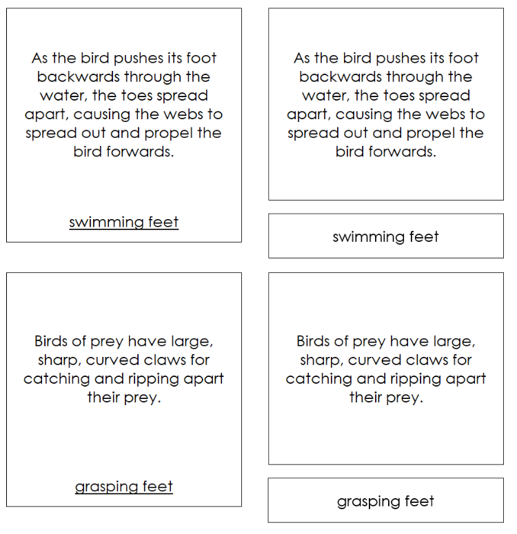To use three-part cards, match the labels to the corresponding pictures. Verify the matches using the control cards with the labels.