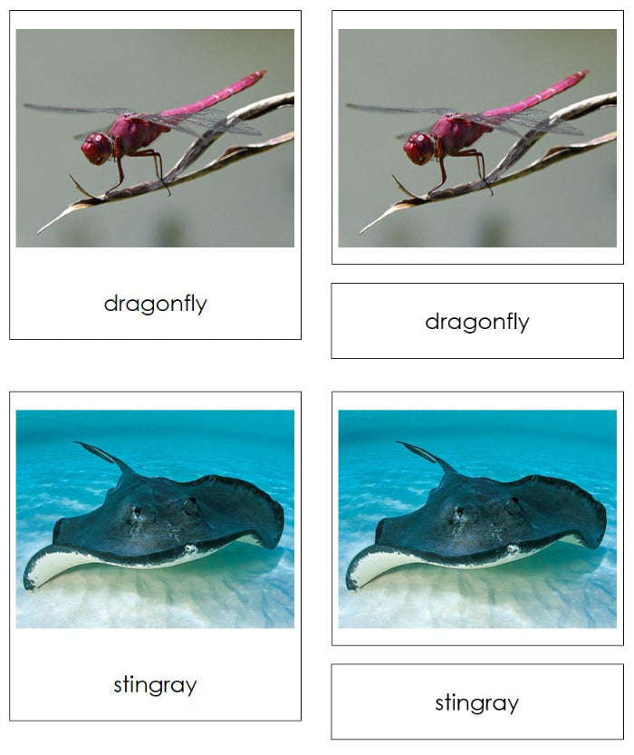 The animal cards are in a three-part format: