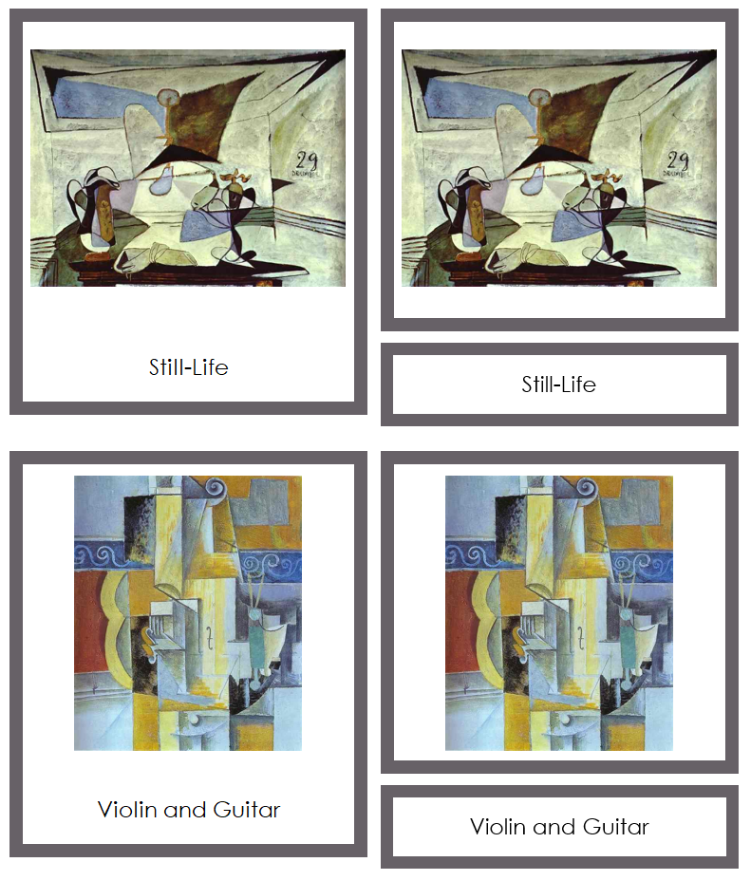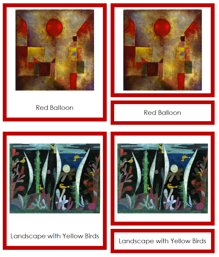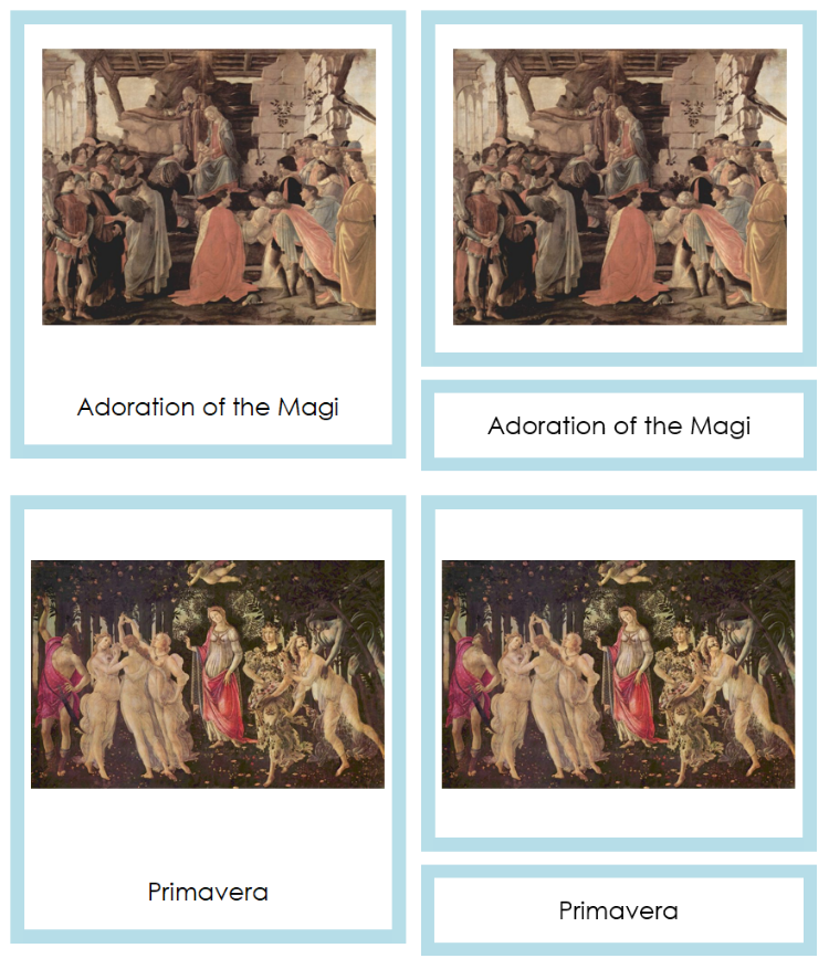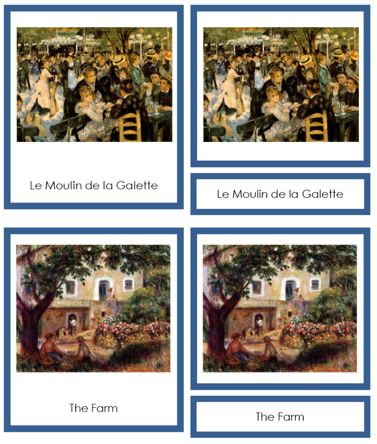 Three-part art cards offer an engaging, self-correcting method for children to learn the names of artists and their artworks. This approach encourages independent learning and helps build a foundation for future art appreciation.