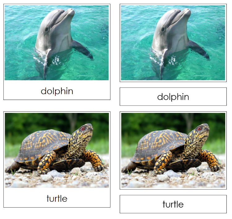 To use three-part cards, match the labels to the corresponding pictures. Verify the matches using the control cards with the labels.