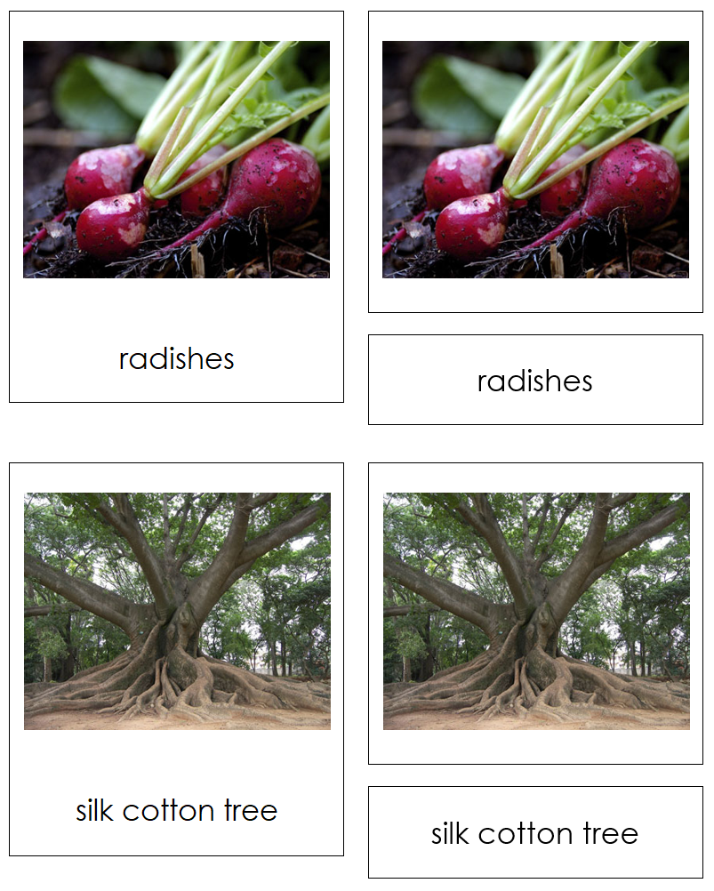 To use three-part cards, match the labels to the corresponding pictures. Verify the matches using the control cards with the labels.