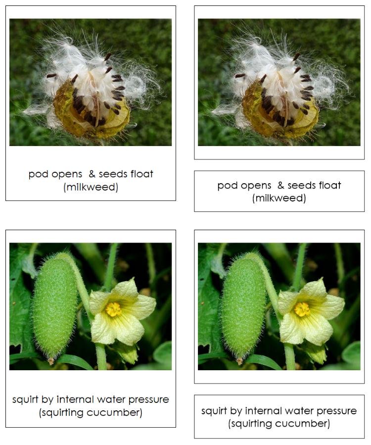 The methods of pollination included: wind, water, animals, insects, and self-pollination. The methods of seed dispersal included: wind, water, animals/humans, and self-pollination.